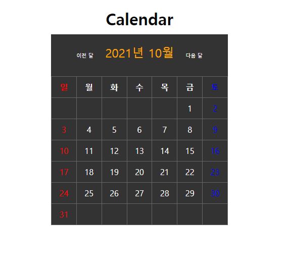 // 한 달 치 날짜를 테이블에 시작 요일부터 순서대로 표시