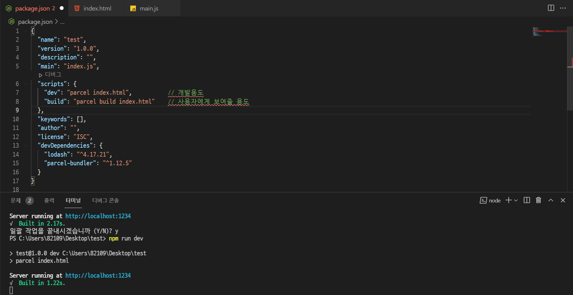 2. npm install parcel-bundler -D(또는 npm i) -> node_modules, package-lock.json 설치됨