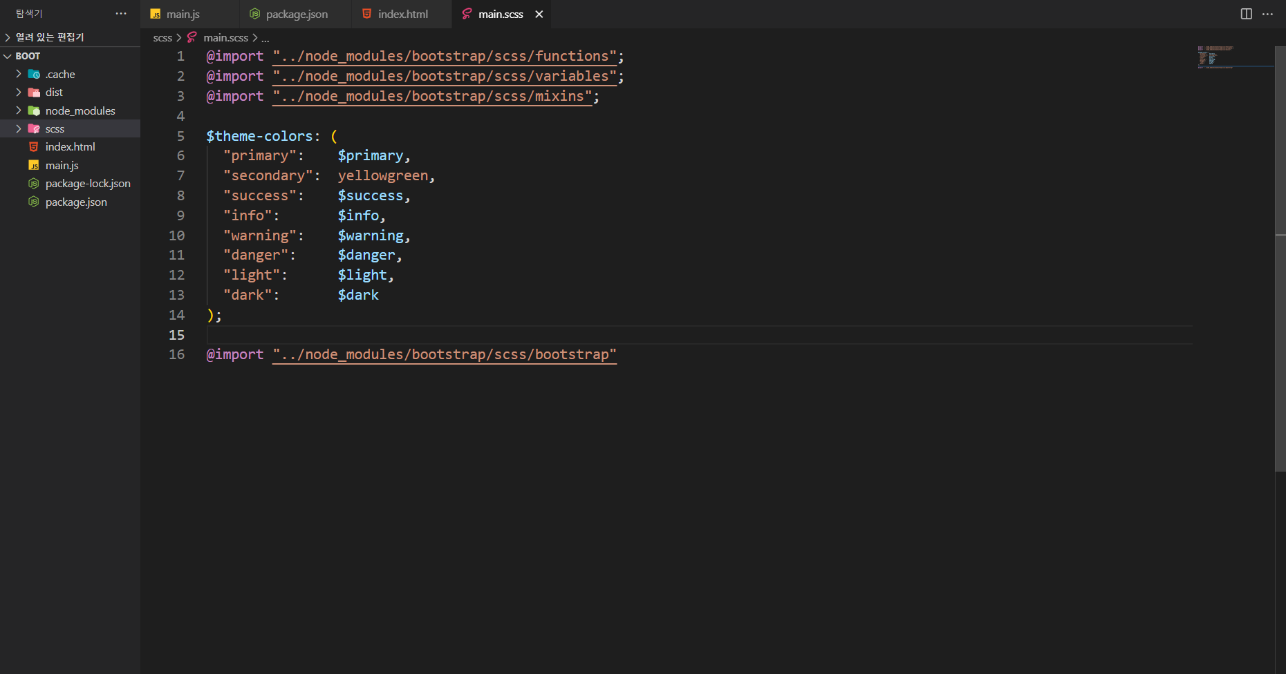 터미널에서 npm install bootstrap@next