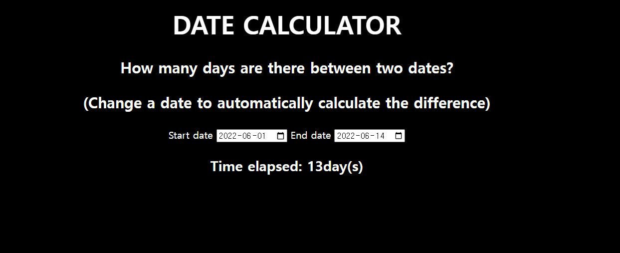 <p>(Change a date to automatically calculate the difference)</p>