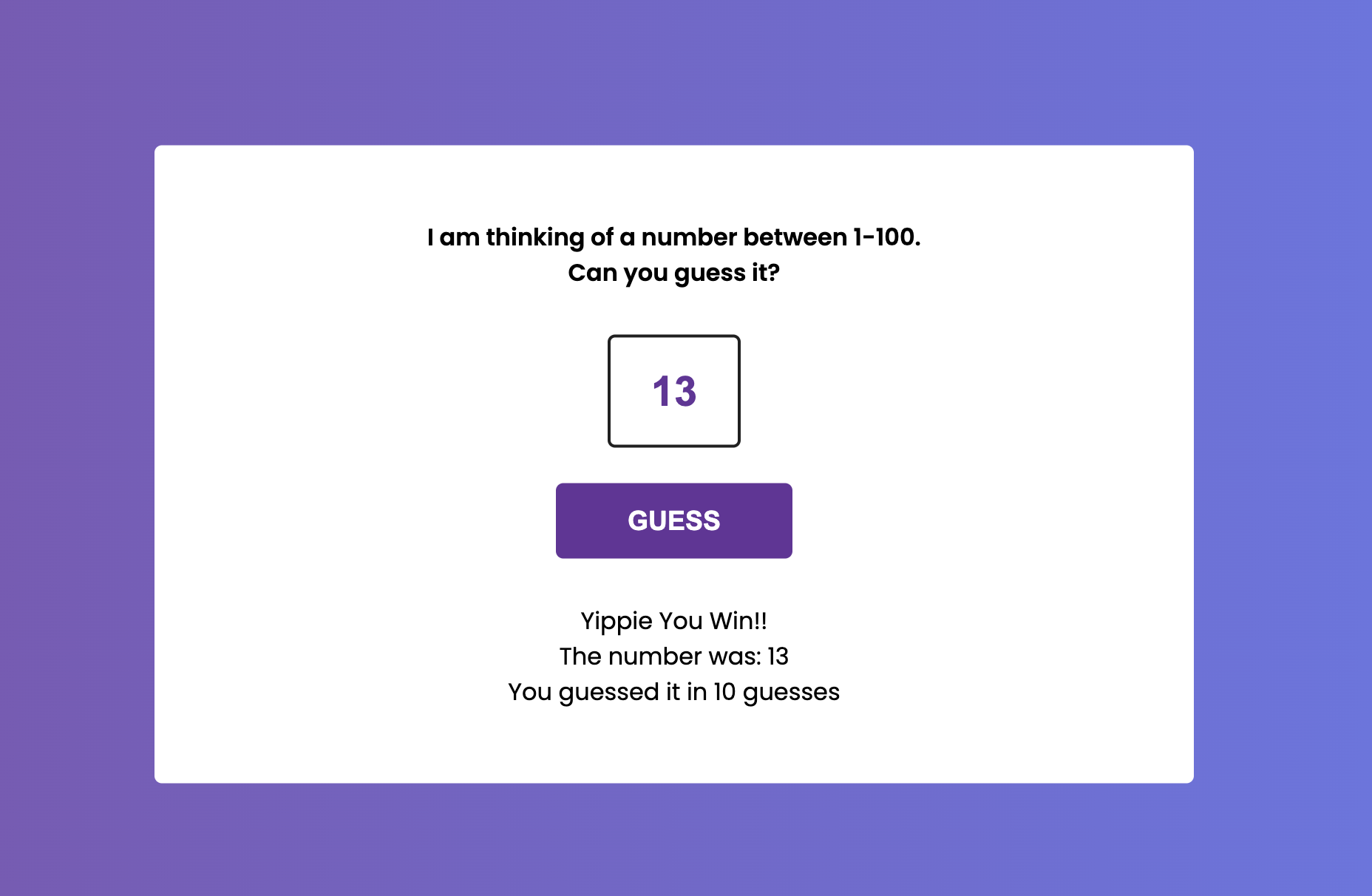 <h3>I am thinking of a number between 1-100.</h3>