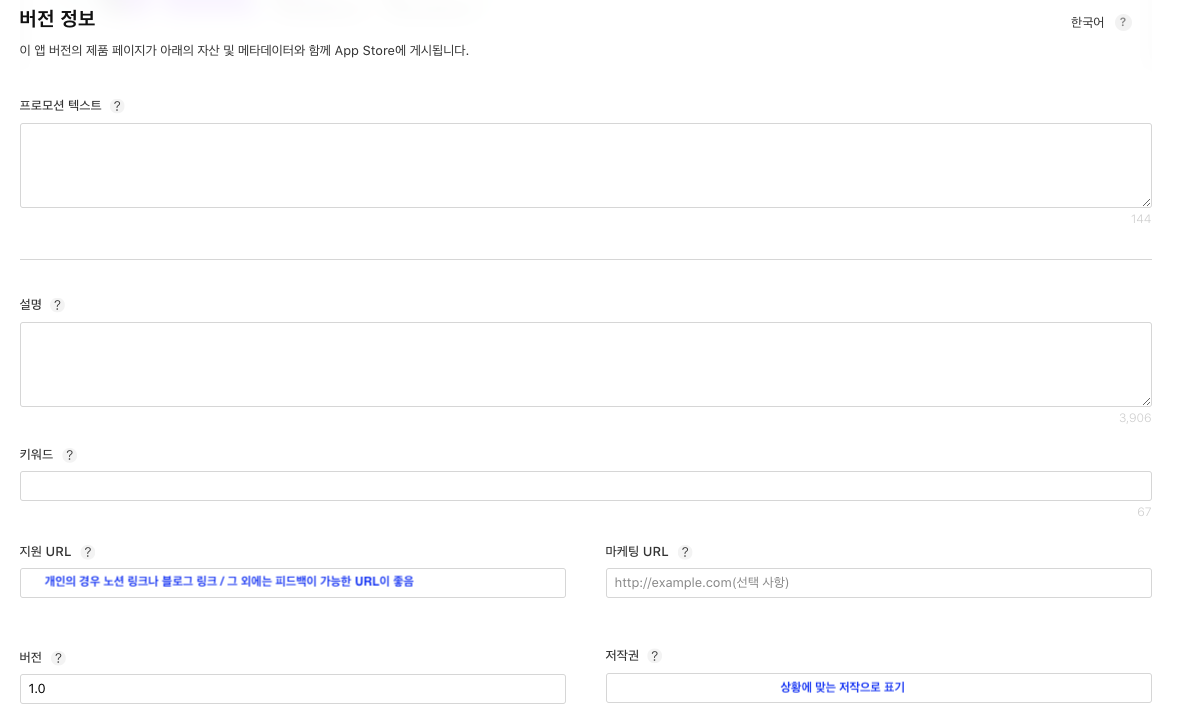 앱 정보, 가격 및 사용 가능 여부, 앱이 수집하는 정보 등을 기입하고 심사 요청