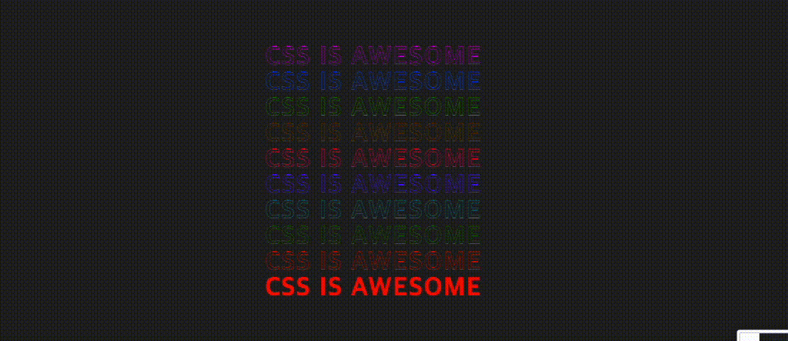 <h2 style="--i:1;">CSS IS AWESOME</h2>