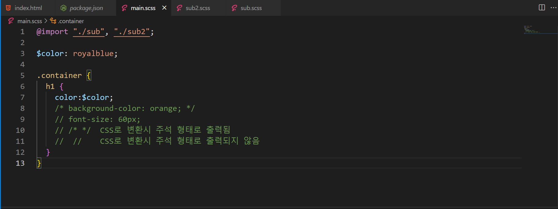 - 변수 사용 ex) margin: $size / 2;