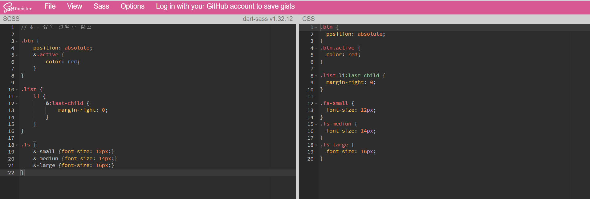 SCSS => CSS 변환 확인 사이트